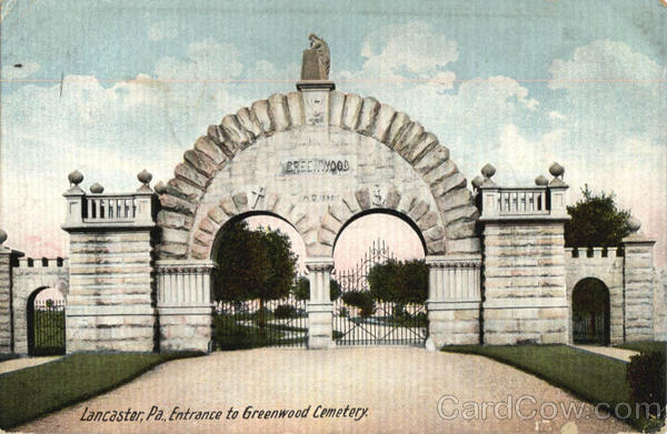 Lancaster, Pa, Entrance to Greenwood Cemetery