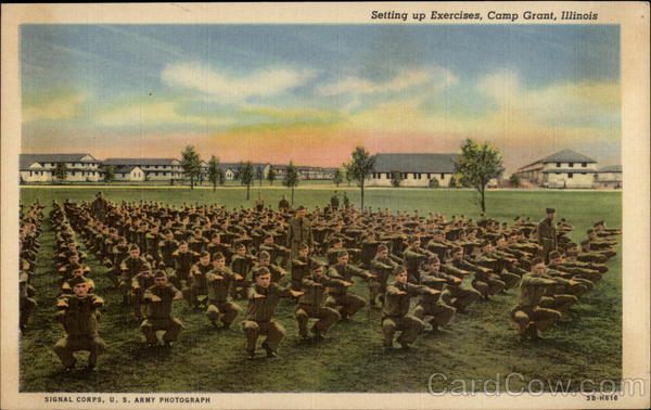Front: Setting up Exercises, Camp Grant, Illinois SIGNAL CORPS, U. S. ARMY PHOTOGRAPH 3B-H616 Back: GENUINE CURTEICH-CHICA