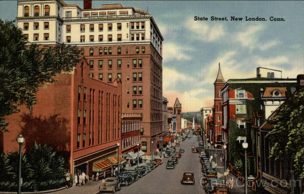 Front: State Street, New London, Conn. EEE Back: MADE IN U. S. A "TICHNOR QUALITY VIEWS" REG. U.S. PAT, OFF. MADE ONLY BY TICHNOR BROS., INC., BOSTON, MASS. 69633 NEW LONDON NEWS CO., NEW LONDON CONN,