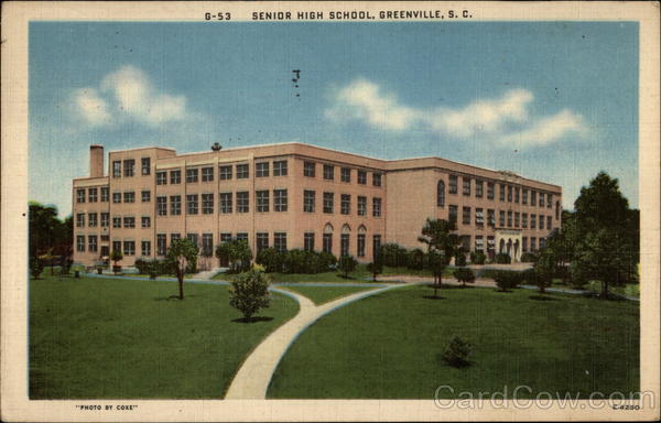 Front: G-53 SENIOR HIGH SCHOOL, GREENVILLE, S. C. ER "PHOTO BY COXE" E-6250 Back: 5200 ALBANA الیں 145 Teresa & Rust nec 630 h. Lincoln Salem,