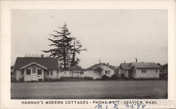 Front: HANNAHE HANNAH'S MODERN COTTAGES PHONE 2-L-T SEAVIEW, WASH. ダン Back: Zam PADESNASINS NATIONAL PRESS, INC., NORTH CHICAGO