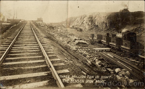 Front: THREE MILLION TON IN SIGHT THE BENSON IRON MINE, Back: BEACH-SERIES KERE MADE AT REMSEN, X, Y. GENUINE HAND FINISHED PHOTOGRAPH