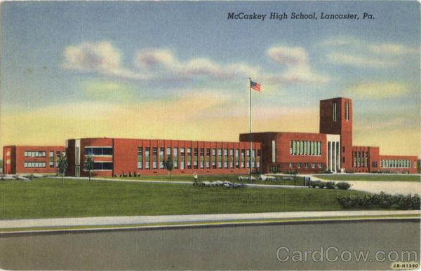 Front: McCaskey High School, Lancaster, Pa. 2B-H1390 Back: J6 DISTRIBUTED BY I. STEINFELDT, LANCASTER, PA. GENUINE CURTEICH-CHICAGO "C.T. ART-COLORTONE'' POST CARD (REG. U.S. PAT. OFF.) 25 HERE
