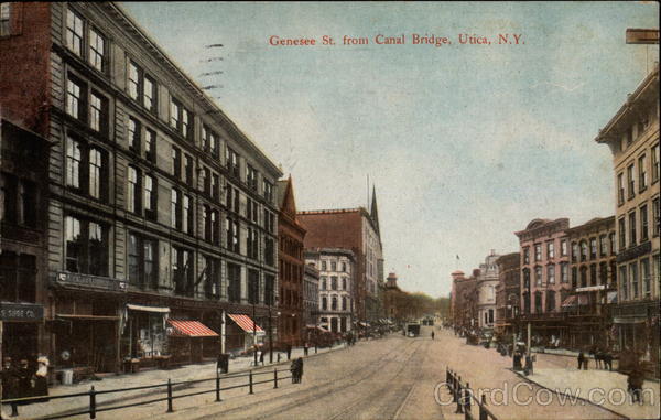 Front: Genesee St. from Canal Bridge, Utica, N.Y. Back: SST OSTPAGE Dear Mother SA JUL 190 30 PM 1910 au in Published by the Utica Paper Co., Utica, N. Y. ha ane here utera Have bun Mrs. G G Pride ant seeing Ponte Seven the tour. Ida. Cewego