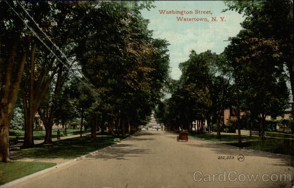 Front: Washington Street, Watertown, N. Y. 202,309.. JV) Back: The Leighton & Valentine Co., N.Y. City. FAMOUS EZ lez QUALITY WORLD THROUGHOUT