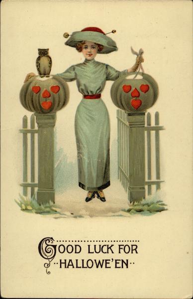 Good Luck for Halloween - Woman with Jack 'O Lanterns