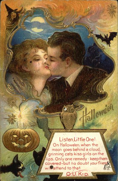Listen, Little One! On Hallowe'en, when the moon goes behind a cloud, grinning cats kiss girls on the lips. Only one remedy: keep them covered--but no doubt your friend will attend to that. O.U.Kid