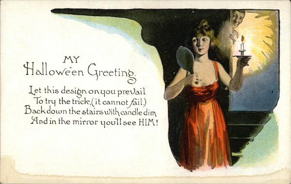 Let this design on you prevail, To try the trick (it cannot fail), Back down the stairs with dandle dim, And in the mirror you'll see HIM!