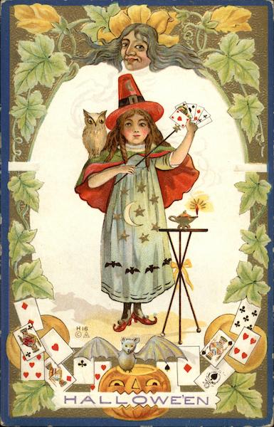 Little Girl Witch Performing Magic Tricks