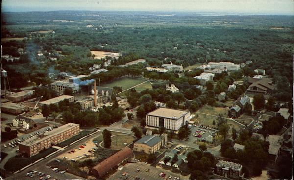 Air view of the University of Rhode Island at Kingston. This institution began in 1887 as a State Agricultural School, later to be chartered in 1892 as the Rhode Island College of Agriculture and Mechanic Arts. This University owes its origin to the Federal Land Grant College Act of 1862 known as the Morrill Act Book & Tackle Shop |