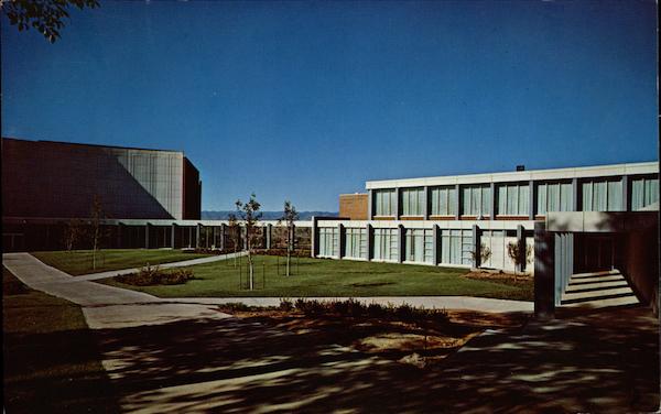 May Bonfils Stanton Center of Performing Arts and the May Bonfils Stanton Library located on the 160-acre campus of Loretto Heights College, Denver, Colorado. Photo by: Lloyd Rule 31622 6-8-82