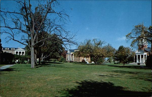 HOOD COLLEGE Frederick, Maryland A private, liberal arts college for Women founded in 1893. This campus view shows Coffman Chapel on the right and two of the dorms. Pub. by D. E. Traub, 2313 South Rd., Balto, Md. 21209 137147 Mar 9, 1974