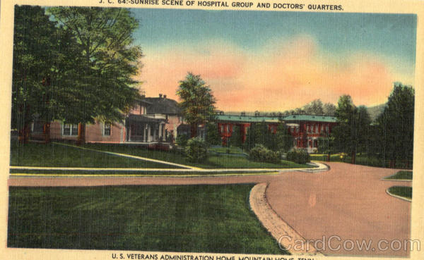 SUNRISE SCENE OF HOSPITAL GROUP AND DOCTORS' QUARTERS. U. S. VETERANS ADMINISTRATION HOME MOUNTAINL HOUE
