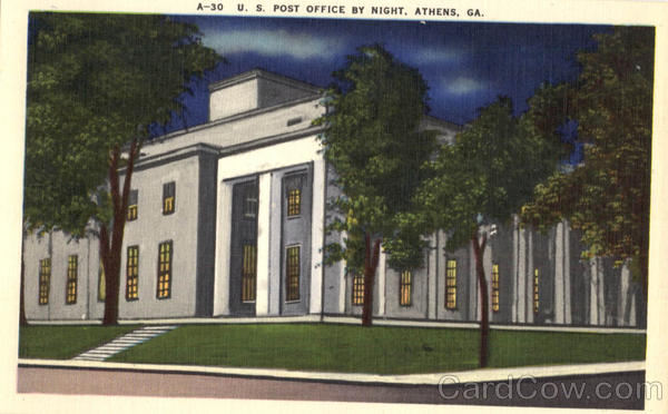| This Post Office building is constructed of Georgia Marble and the architecture of this Post Office is the same structure of many buildings and homes of this city. The architecture is different from any other Post Office in the united States |