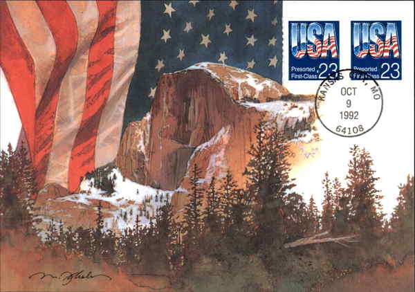 United States postage stamps the American flag.