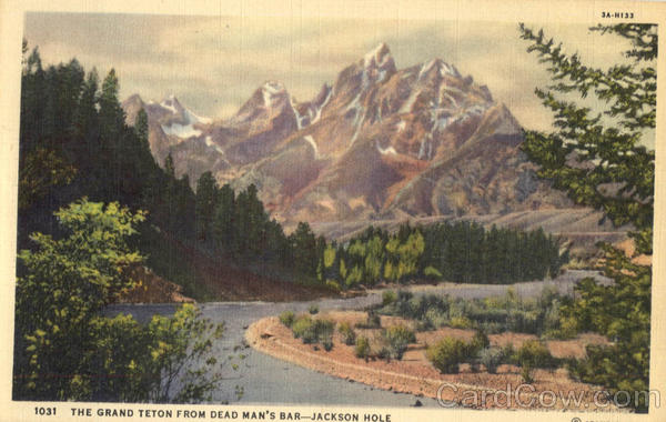 Front: 3A-H133 1031 THE GRAND TETON F ROM DEAD MAN'S BAR-JACKSON HOLE Back: "c. T. ART-COLORTONE”—CRANDALL STUDIOS, TETON NATIONAL PARK AND BOISE, IDA.