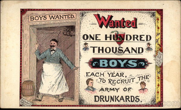 ttonbury Wntel nillte BOYS WANTED. ar ONE HUNDRED THOUSAND BOYS EACH YEAR, TO O RECRUIT THE ARMY OF DRUNKARDS. 4.0. Halbert