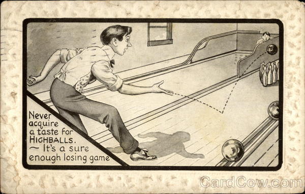 Front: Never acquire a taste for HIGHBALLS. It's a sure enough losing game Back: no ITY, NOV 26 9-PM 1910 2-150 m. J. Wynn & here at 7:20 time babe for Omaha Jeffersons, o Dad Rorhoz M.280.