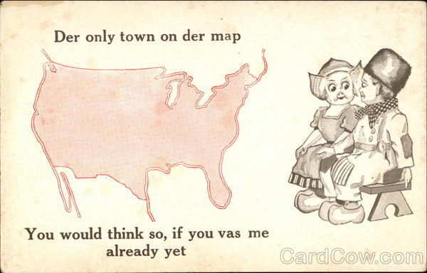 Front: Der only town on der map You would think so, if you vas me already yet Back: 3o U. S., Canada and Mexico 1 Cent. Foreign Coun- tries, 2 Cents.