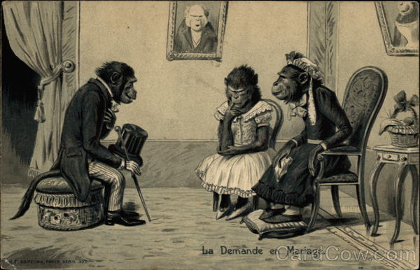 Front: ba Demande en Mariage. EDITEURS PARIS SERIE 337 Back: mprime GARTE POSTALE YUXE Szisode Ce côté est exclusivement réservé à l'adresse. M chadelicoidelle de Bricourt Montrenie Par Bhaulantay at Taubert eft 2) U- Vermet Herre