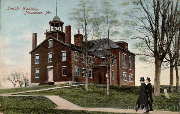 Front: Lincoln Academy, Newcastle, Me. Back: (43008) No. 8912. The Metropolitan News Co., Boston. Mass. and Germany. Me IN SPACE BELOW MAY BE WRITTEN SENDER'S NAME AND