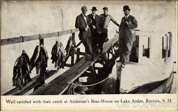 Front: Well satisfied with their catch at Anderson's Boat-House on Lake Andes, Ravinia, S. D. Back: DHP 50 PLACE THE Post Gard.