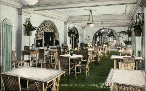 Front: TEA ROOM-Y. w. C. A.. Building. SEAFTLE U.S.A Back: 니안 AHA 94925 MADE BY CURT TEICH & CO., CHICAGO US A