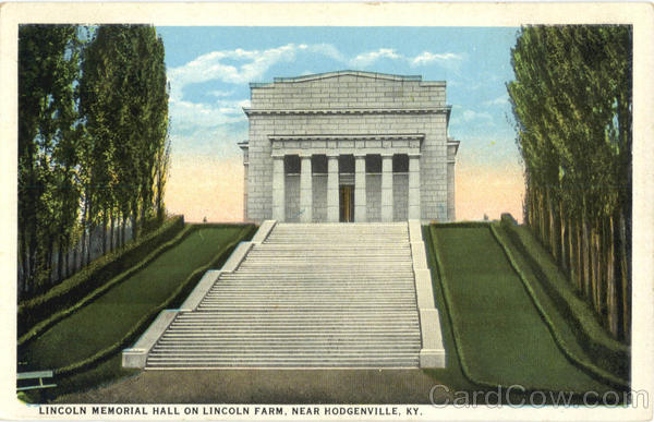 Front: LINCOLN MEMORIAL HALL ON LINCOLN FARM, NEAR HODGENVILLE, KY. Back: R.67247 AND ISLAND POSSESSIONS, CUBA, CANADA AND MEXICO PUBLISHED BY THE KYLE CO., LOUISVILLE, KY. + ㅔ Ch