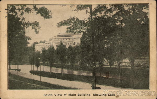 Front: South View of Main Building, Showing Lake Back: UZUSTAGE POST CAR 06, 3 - 15 PM ORT 63 1910 TENN ONE CENU cant jungia the tum having. Will & Addic Wine Ain Relauna Nashville Teen. we and 'tis Buford College an rea