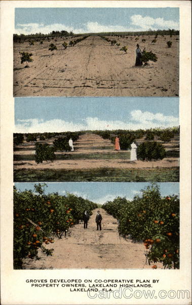 Front: GROVES DEVELOPED ON CO-OPERATIVE PLAN BY PROPERTY OWNERS, LAKELAND HIGHLANDS, LAKELAND, FLA Back: "For information address w. F. W. Hallam & Co., Lakeland Highlands Country Club, Lakeland, Fla.” Posterd COMMERCIALCHROME 48638