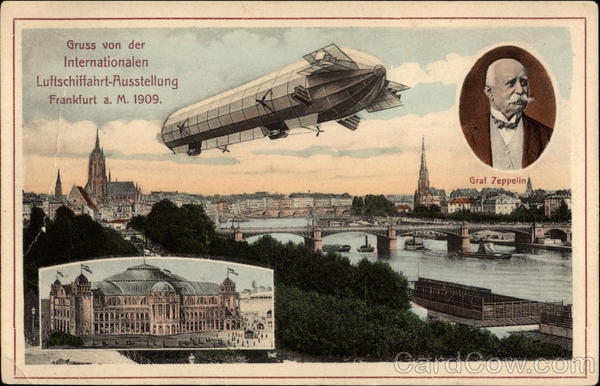 Front: Gruss von der Internationalen Luftschiffahrt-Ausstellung Frankfurt a. M. 1909. Graf Zeppelin Back: L. Klement, Frankfurt a. M. Gesetzl. gesch. 1909, 盛。