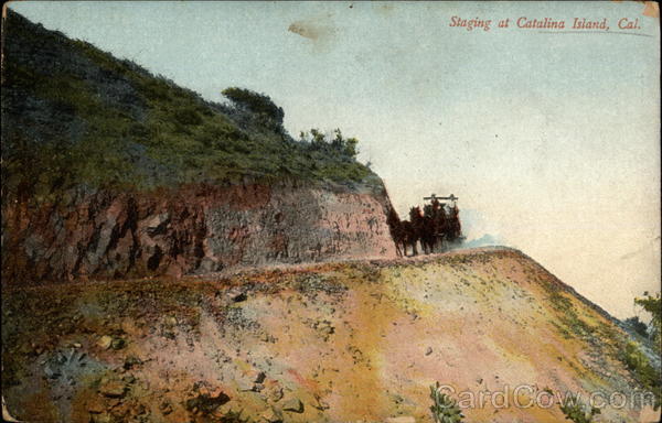 Front: Staging at Catalina Island, Cal. Back: 858. Rosin & Co, Phila, & New York. Made in Gierminy. GIFT W. C. DICKERSON ..^ VD AVE. ET TAS PICTURE COLLROEN or "FART DEPT. vaan jt Post Card File mo