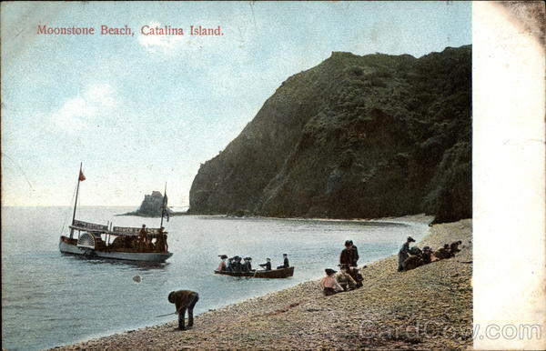 Front: Moonstone Beach, Catalina Island. POWER L SCH. Back: رس 1 c Island Pog- Mexican THE SPACE ABOVE IS RESERVED FOR POSTMARK. III M. Rieder, Publ., Los Angeles, Cal. Made in Germany. No. 3280. IN SPACE BELOW MAY BE WRITTEN SENDER'S NAME AND