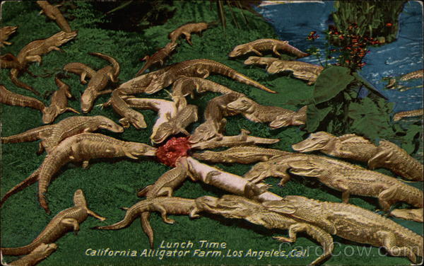 Front: Lunch Time California Aliigator Farm, Los Angeles, Cal. Back: WIES PACIFIC NOVELTY CO. SAN FRANCISCO GLOS ANGELES 201