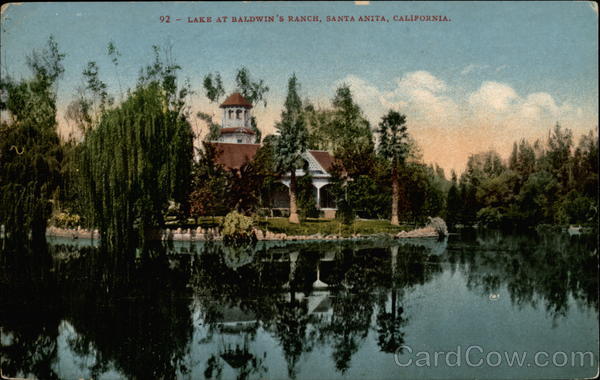 Front: 92 - LAKE AT BALDWIN 'S RANCH, SANTA ANITA, CALIFORNIA. Back: MADE IN AMERICA BY EDW. H. MITCHELL AT SAN FRANCISCO
