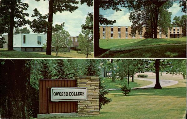 Front: OWOSSO COLLEGE Back: Owosso COLLEGE, Owosso, MICHIGAN Located at 1020 S. Washington St. Founded in 1909. The College now offers B.S. and B.A. degrees. 46473ABC Pub. by Graphic Arts Studio of Owosso 618182