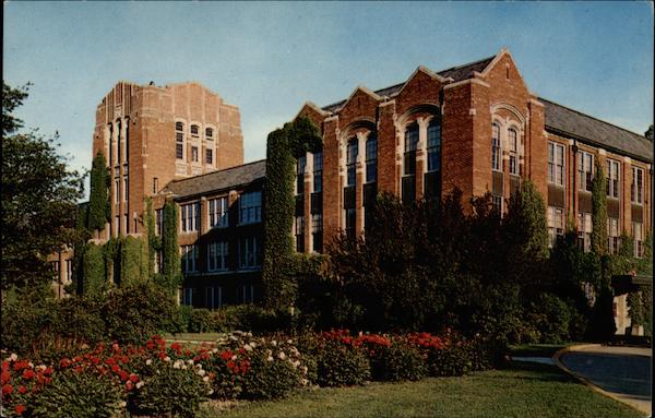 | Warriner Hall, a beautiful building with fine surroundings, made more beautiful in spring by its gorgeous peony beds was completed in 1928. This building was named in honor of former President Warriner and replaces the former main building which was destroyed by fire. It has a large auditorium seating 1500 persons and also contains a great number of rooms for offices |