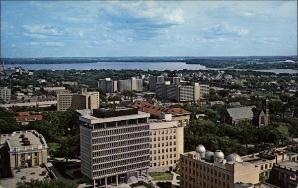 Fragan Fabulous Madison in Wonderful Wisconsin University of Wisconsin at Madison, Wis. The South East Campus Area With Lake Monona in the Background FAGAN PUBLISHING CO., Madison, Wis. 53705, Phone 233-2842 S-75 656-1 June 27,80