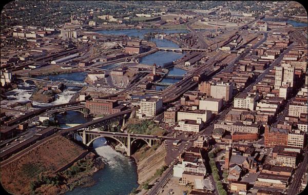 SPOKANE, WASHINGTON. This aerial view shows upper