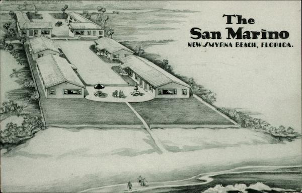 Front: San Marino NEW SMYRNA BEACH, FLORIDA. Back: THE SAN MARINO ON THE OCEAN 1405 South Atlantic Avenue New Smyrna Beach, Florida Mr. & Mrs. Crowley - Prop. One and two bedroom apartments with all facilities. Pinnacle Press-Orlando, Fla.