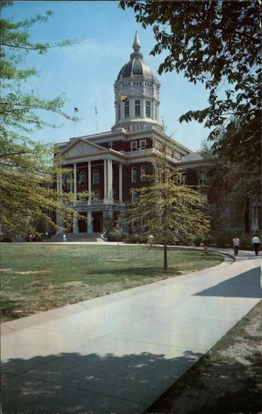 JESSE HALL, UNIVERSITY OF MISSOURI COLUMBIA, MO. This red-brick building, with its towering dome, was built in 1895. Color by Larry Nicholson CARD PUBLISHED BY J. E. TETIRICK, KANSAS CITY, MO Tetricolor 28360 13 Ru983,766