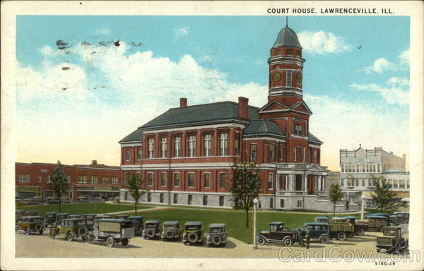 Front: COURT HOUSE, LAWRENCEVILLE, ILL. R 1. TH RE 5160-29 Back: TANO PO lea with AWREN OC 128 7 PM ALIN OP cler estuday at 1936 Sitice tre aut. lyft mort at the union state st. Janicei e to leave hul Friday for Pittsbur Lrae expect 《 an