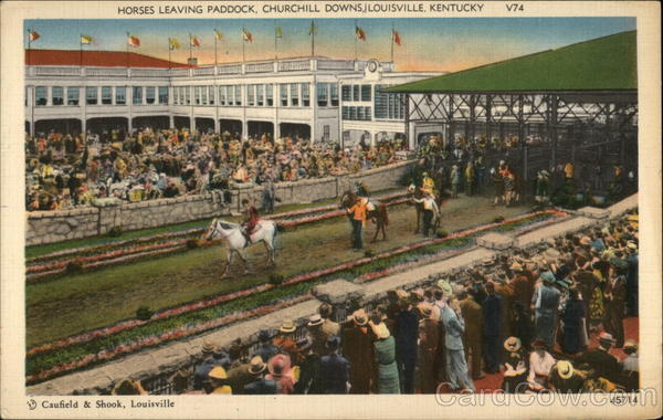 Front: HORSES LEAVING PADDOCK, CHURCHILL DOWNS, LOUISVILLE, KENTUCKY V74 45714 O Caufield & Shook, Louisville Back: The Kyle Co., Louisville, Ky. IN ASTRO TROB01