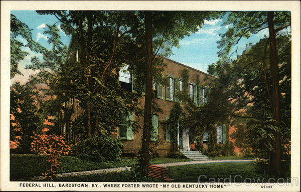 Front: FEDERAL HILL, BARDSTOWN, KY., WHERE FOSTER WROTE "MY OLD KENTUCKY HOME" 69033 Back: PUBLISHED BY L. F. MATTINGLY, LEXINGTON, KY. C. T. AMERICAN ART COLORED TE
