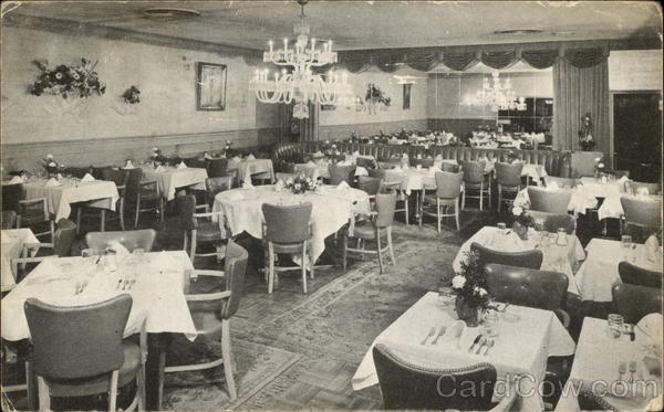 The formal dining room of lacomini's famous restaurant, known the world over for delicious charcoal broiled steaks and broiled live lobster. When in Akron why not treat yourself to the best. IACOMINI'S, 321 W. EXCHANGE STREET