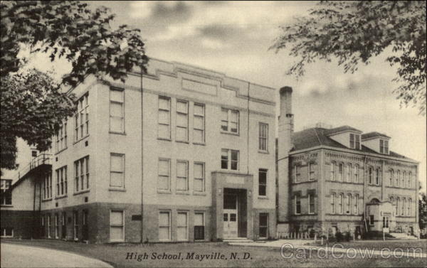 Front: High School, Mayville, N. D. Back: Aug 21/1993 "TICHNOR QUALITY VIEWS" REG. U. S. PAT. OFF. MADE ONLY BY TICHNOR BROS., INC., BOSTON, MASS.