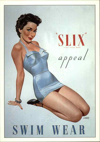 Front: SLIX REGD TRADE MARK appeal SWIM WEAR Back: FIFTIES ALLURE SERIES (A) From an original in The Robert Opie Collection at the Museum of Advertising & Packaging, Gloucester. By kind permission of Slix Limited. ROFA 3