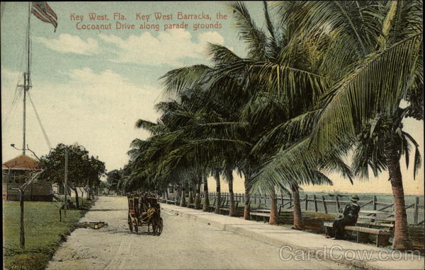 Front: Key West, Fla. Key West Barracks, the Cocoanut Drive along parade grounds Back: QUALITY and Island Possessions Cuba, Canada and MESSAGE MAY BE WRITTEN ON THIS SIDE. THE HUGH C. LEIGHTON CO., MANUFACTURERS, PORTLAND, ME., U.S.A. 15233