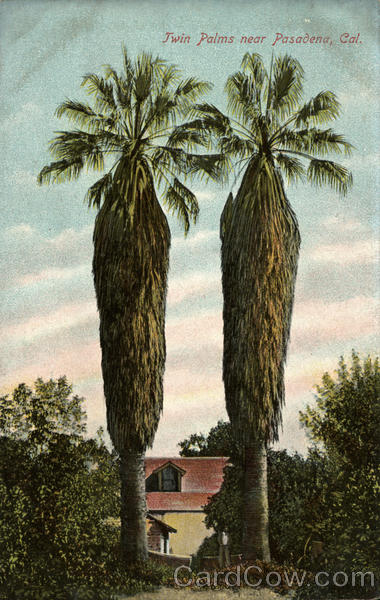 Front: Twin Palms near Pasadena, Cal. Back: Island Mexican 1c Foreign 2c M. B.57. Publ. by Newman Post Card Co., Los Angeles, Cal. Made in Germany. Write message here. (62242)