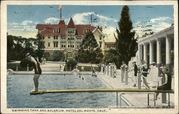 Front: SWIMMING TANK AND SOLARIUM, HOTEL DEL MONTE CALIF Back: MONT STATUES SC ته TAC DEL 25 , UNل 10- AM KASHINGTONES وصا CA خم کے ہے yone time همه نع lonely This min Paner دوست ہے۔ دیا ہے کہ fue مه 15 Wisconsint pochita و1 رد